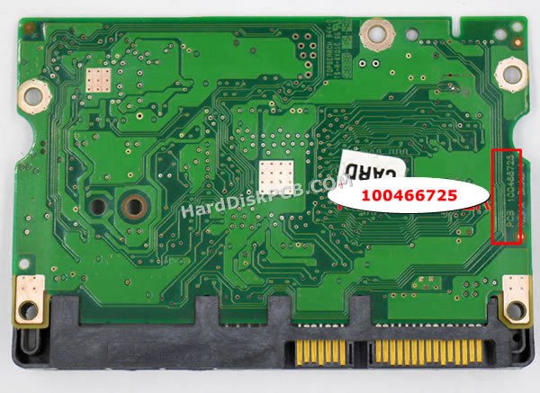 Le « Numéro de PCB » est 100466725. Le « Numéro de PCB » du disque dur Seagate commence par « 100*** », le numéro est imprimé sur la carte. Lorsque vous souhaitez remplacer la carte, la carte donneuse doit avoir le même « Numéro de PCB » que votre carte d’origine. Changer carte pcb disque dur Seagate